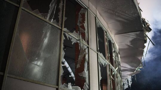 В это время во дворе радикалы принялись крушить мебель, частями мебели и телескопическими дубинками выбивать окна и стеклянные двери в помещение. В дыры в окнах и дверях полетели газовые баллоны со слезоточивым газом.